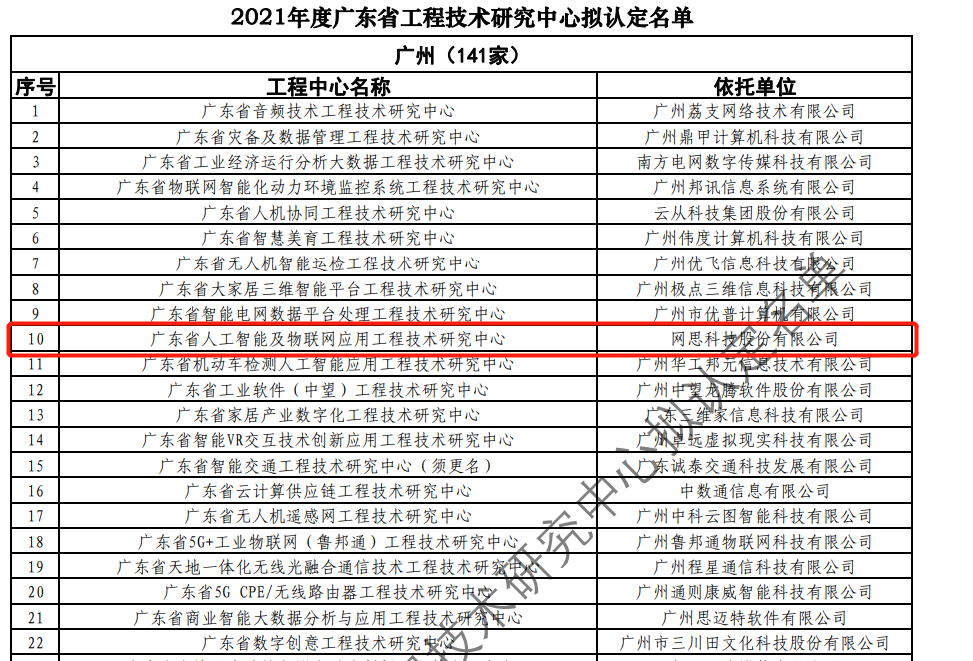 日前,广东省科技厅发布2021年度广东省工程技术研究中心名单。经过层层筛选、专家评审,依托星空中国有限公司官网,星空官方网站-建设的“广东省人工智能及物联网应用工程技术研究中心”榜上有名。广东省工程技术研究中心主要依托省内行业、领域具有科技实力的、拥有一定规模以上创新型企业建设,部分依托高校和科研院所组建。工程中心旨在